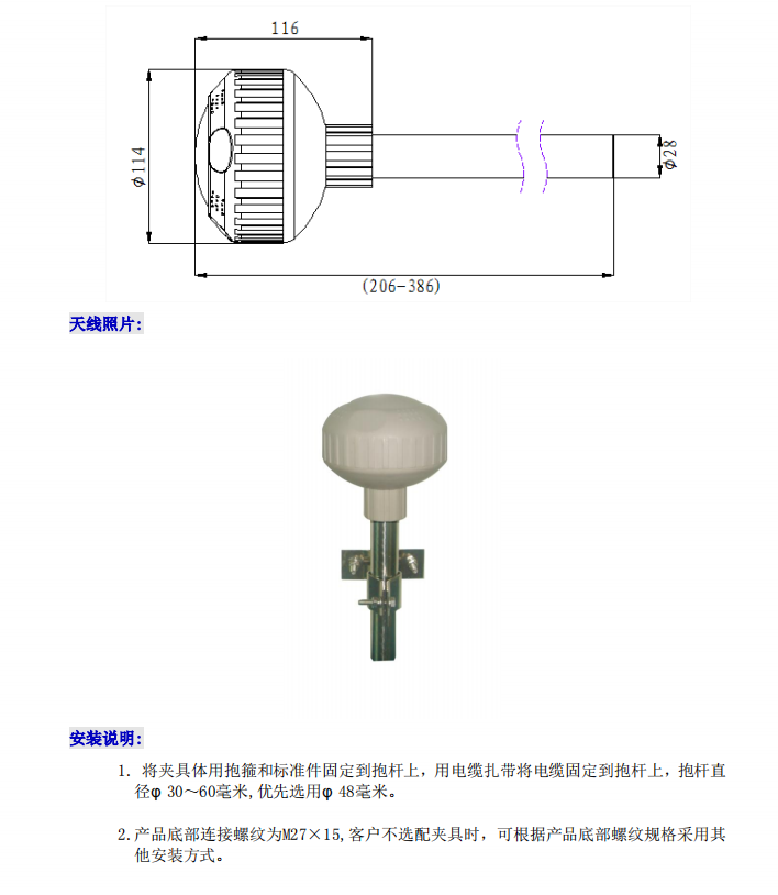 4、天线外罩采用耐候性良好,抗老化优质材料,适合长期野外环境下工作。